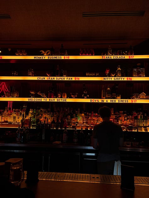 Bar Betsie, sister to another great spot, JaneJane, was divine. Great music, cozy booths, and excellent cocktails made us all forget about the impending blizzard. My favorite sips of the night were the Monkey Business (a banana-cold-brew inspired rye old fashioned), the Teaña Colda (Thai-tea based tropical drink), and their whipped honey take on a bee’s knees. Classic.