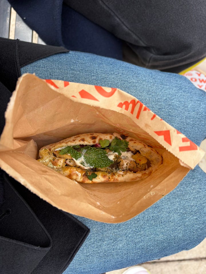 We walked from Dolcezza to the shops downtown with drinks in hand. By the time we picked up a sandwich from Call Your Mother after a strict one-hour trip to Nordstrom Rack on Saturday morning, we had close to seven thousand steps. The next logical step was to rot in bed for a little—Bridget was on her way from the airport, and there was even more walking to do in the afternoon.