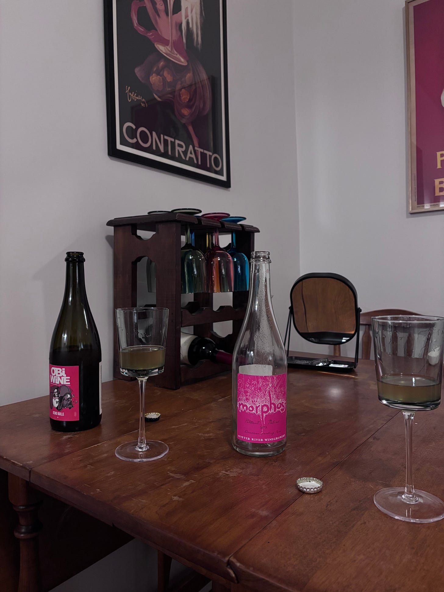 Right now, I am SOBER. Only for a month (#springcleaning). But I have been stacking bottles on the shelf for when I come out of this March madness (ha). I look forward to returning to a funky pet-nat, perhaps a bottle of Oyster River’s “Morphos” shared between me and Claude on April 1. Who knows! April fools!